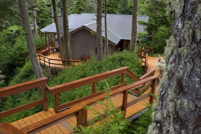 Comprised of up of three unique lodges, Langara Island Lodge has the Chinook Lodge with a capacity of 22 guests, the Eagle Lodge with a capacity of 12 guests and the Raven Cottage with a capacity of 6 guests. All lodges are of the highest standard, luxuriously appointed and all with large lounge and dining areas. Each lodge has hot tubs on expansive decks overlooking the water. Rooms are based on double occupancy, with two comfortable queen beds in each.